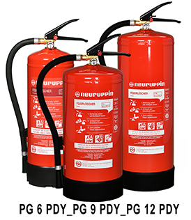 Neuruppin stored pressure powder extinguisher for use on Class A, B and C fire risks.